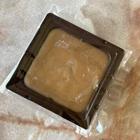 Fudge made with brown sugar, white chocolate, heavy cream, and NonGmo corn syrup mixed in a large copper kettle to the perfect temperature and poured out in a 4 oz square.