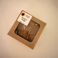 Fudge made with cane sugar, white chocolate, heavy cream, pumpkin puree, spices, and NonGmo corn syrup mixed in a large copper kettle to the perfect temperature and poured out in a 4 oz square.